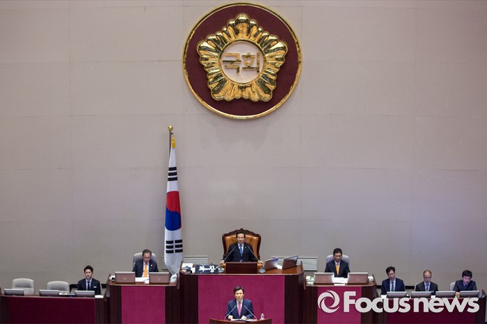 (서울=포커스뉴스) 황교안 국무총리가 27일 오후 서울 여의도 국회에서 열린 344회 국회(임시회) 3차 본회의에 참석해 추가경정예산안과 관련한 시정연설 하고 있다.