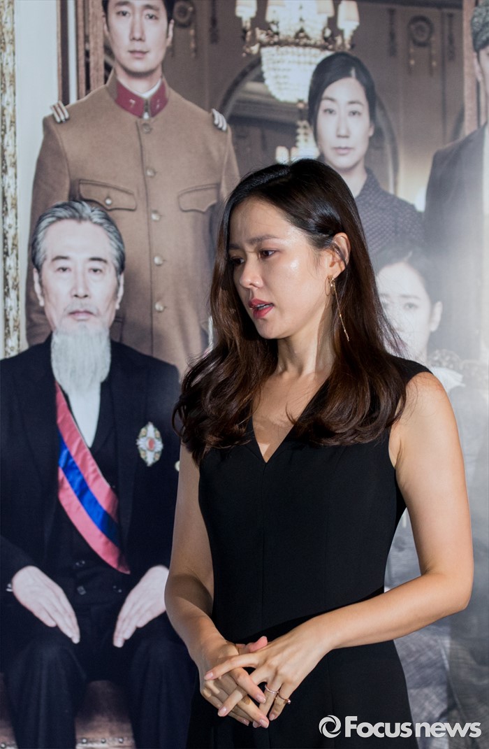 (서울=포커스뉴스) 27일 오후 서울 광진구 롯데시네마 건대입구점에서 열린 영화 '덕혜옹주' 언론 시사회에 참석한 배우 손예진이 무대에 오르고 있다.