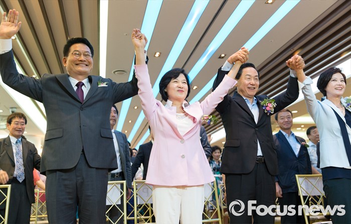 △민주정책연구원 활성화로 당내 민주주의 강화26일 오후 서울 서초구 엘루체에서 열린 더불어민주당 서울특별시당 서초갑 정기지역대의원대회에서 전당대회 출마를 선언한 송영길(왼쪽부터) 의원과 추미애 의원, 김상곤 전 혁신위원장이 만세삼창을 하고 있다. 2016.07.26 김인철 기자 전당대회 출마를 선언한 추미애 더불어민주당 의원이 30일 오전 서울 여의도 국회 정론관에서 새만금 공항 건설 공약과 관련 기자회견을 하고 있다. 2016.06.30 박동욱 기자 송영길 더불어민주당 의원이 24일 오전 서울 여의도 국회 정론관에서 당대표 출마 기자회견을 하고 있다. 2016.07.24 허란 기자 김상곤 전 더불어민주당 혁신위원장이 24일 오전 서울 여의도 국회 정론관에서 당대표 출마 기자회견을 하고 있다. 2016.07.24 허란 기자