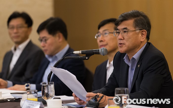 (서울=포커스뉴스) 28일 오전 서울 서초구 쉐라톤 서울 팔래스 강남 호텔에서 열린 '책임있는 소비문화 조성을 위한 기업인과의 간담회'에 참석한 김학현(오른쪽) 공정거래위원회 부위원장이 모두발언 하고 있다.
