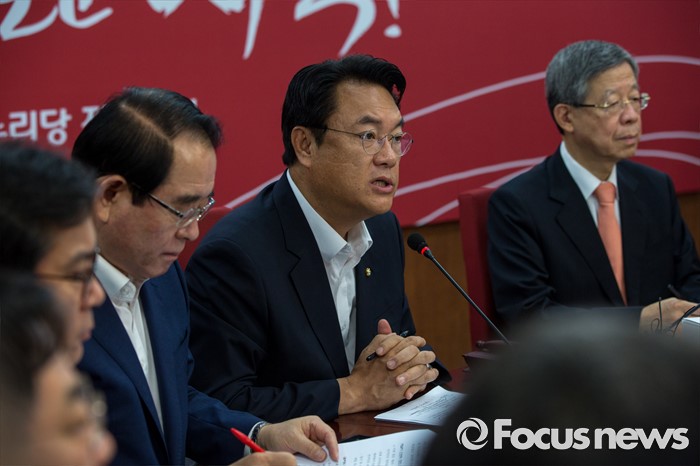 (서울=포커스뉴스) 정진석 새누리당 원내대표가 28일 오전 서울 여의도 새누리당사에서 열린 혁신비상대책위원회의에 참석해 모두발언 하고 있다.