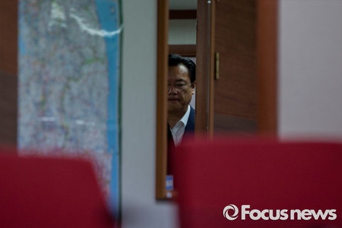 (서울=포커스뉴스) 정진석 새누리당 원내대표가 28일 오전 서울 여의도 새누리당사에서 열린 혁신비상대책위원회의에 참석하기 위해 회의실로 이동하고 있다.