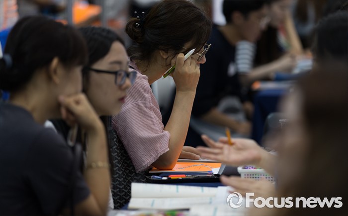 (서울=포커스뉴스) 28일 오전 서울 강남구 코엑스에서 열린 2017학년도 수시 대학입학정보박람회 행사장을 찾은 학부모와 학생들이 상담을 받고 있다. 이번 박람회는 7월 28일부터 31일까지 나흘간 진행되며 전국 140개 4년제 대학이 참가한다.