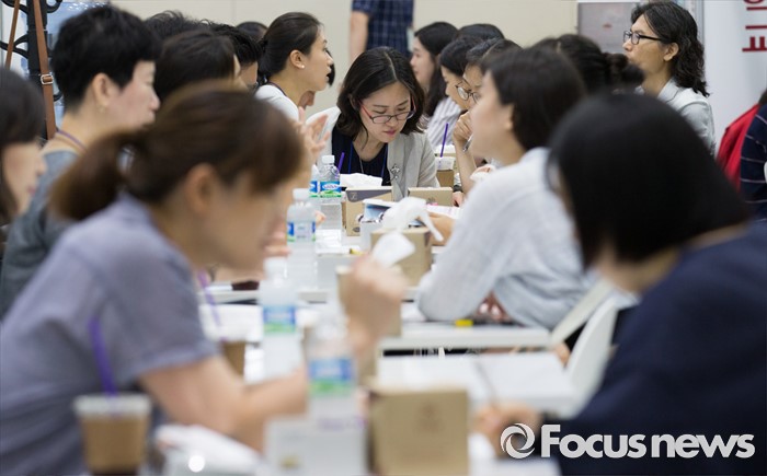 (서울=포커스뉴스) 28일 오전 서울 강남구 코엑스에서 열린 2017학년도 수시 대학입학정보박람회 행사장을 찾은 학부모와 학생들이 상담을 받고 있다. 이번 박람회는 7월 28일부터 31일까지 나흘간 진행되며 전국 140개 4년제 대학이 참가한다.