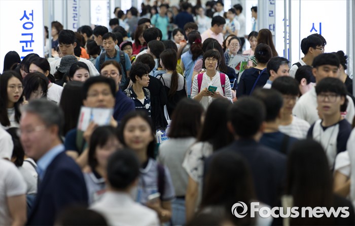 (서울=포커스뉴스) 28일 오전 서울 강남구 코엑스에서 열린 2017학년도 수시 대학입학정보박람회 행사장을 찾은 학부모와 학생들이 대학교 부스를 둘러보고 있다. 이번 박람회는 7월 28일부터 31일까지 나흘간 진행되며 전국 140개 4년제 대학이 참가한다.
