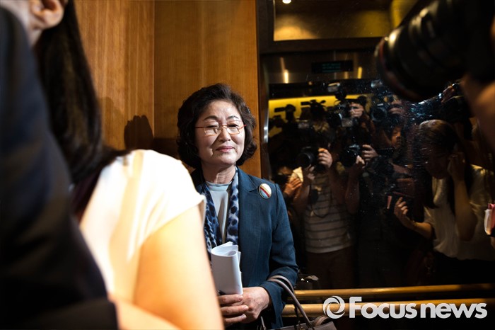 (서울=포커스뉴스) 28일 오후 서울 서대문구에 위치한 '화해·치유 재단' 사무실 인근에서 열린 기자간담회에 참석한 김태현 이사장이 기자들의 질문을 거부하고 간담회장을 빠져나오고 있다.