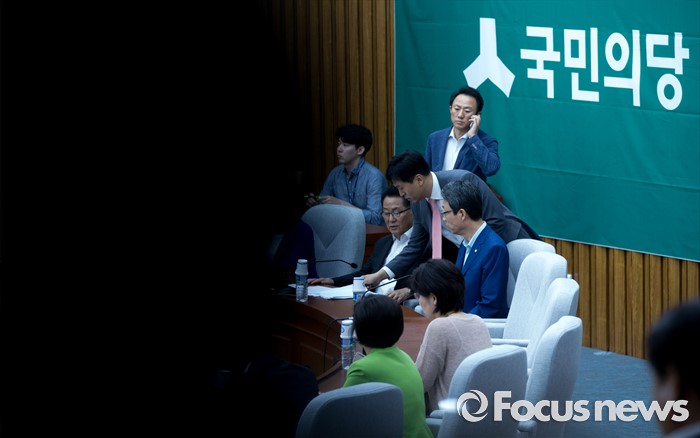 (서울=포커스뉴스) 28일 오후 서울 여의도 국회에서 열린 국민의당 비공개 의원총회에 참석한 박지원 비상대책위원장과 김성식 정책위의장 등이 논의하고 있다. 검찰은 이날 김수민, 박선숙, 박준영 의원에 대한 영장 재청구를 신청했다.