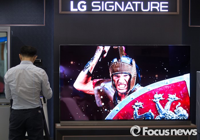 또 VC사업본부 매출액은 AVN(Audio Video Navigation), 텔레매틱스(Telematics) 등 차량용 인포테인먼트 주력거래선 매출 확대로 전년동기 대비 41.9%, 전분기 대비 7.9% 증가한6396억원을 기록했다. 그러나 전기차용 부품 및 인포테인먼트 기기 등 미래 성장을 위한 자원 투입 증가로 168억원의 영업손실을 기록했다.(서울=포커스뉴스) 17일 오전 서울 강남구 코엑스에서 열린 '월드 IT쇼 2016' 의 LG전자 부스를 찾은 한 취재진이 디스플레이 취재하고 있다. 2016.05.17 김유근 기자