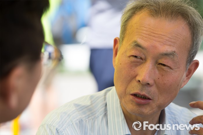 (서울=포커스뉴스) '세월호 참사 진상규명 조사활동 보장’을 위한 단식농성 이틀째인 이석태 세월호 특별조사위원장이 28일 오후 서울 종로구 광화문광장에서 이재명 성남시장과 대화하고 있다.