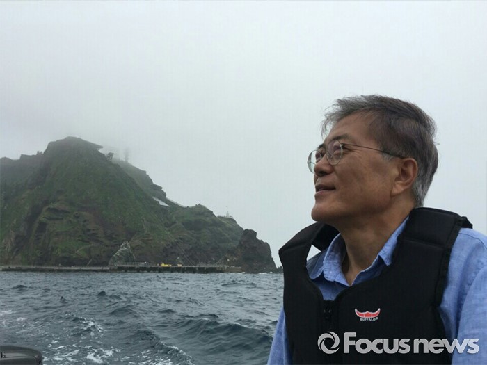 | △ 보트 타고 독도 둘러보는 문재인 |