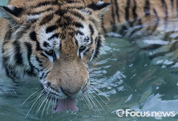 (과천=포커스뉴스) 28일 오후 경기도 과천 서울동물원에서 시베리아 호랑이가 물을 마시고 있다.