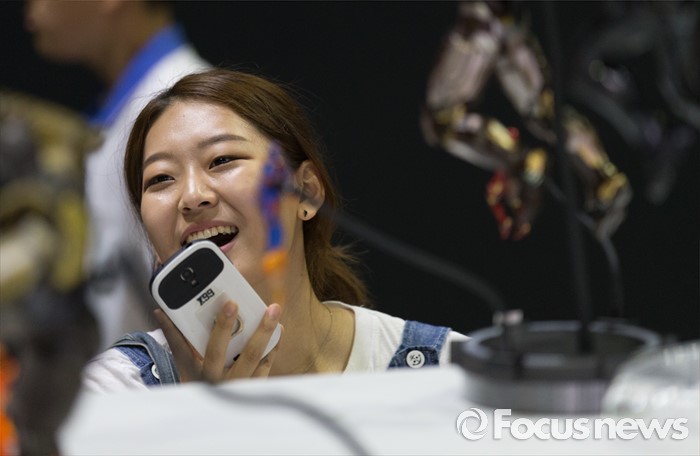 (서울=포커스뉴스) 28일 오후 서울 강남구 코엑스에서 열린 2016 서울키덜트페어를 찾은 한 시민이 피규어들을 보며 환한 미소를 짓고 있다. 키덜트페어는 7월 28일부터 31일까지 나흘간 진행되며 만화, 영화, 장난감 캐릭터 등이 다양한 모습으로 전시되어 있다.