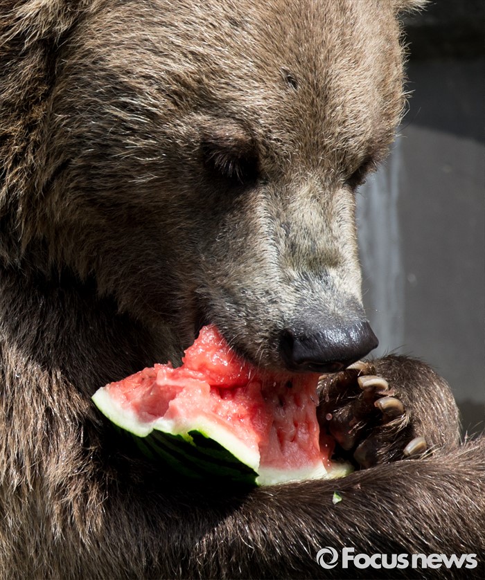 (과천=포커스뉴스) 28일 오후 경기도 과천 서울동물원에서 불곰이 얼음과일을 먹고 있다.