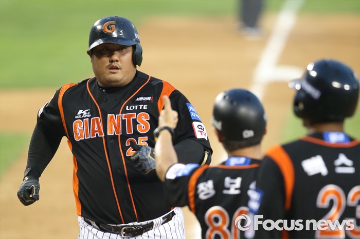 (서울=포커스뉴스) 28일 오후 서울 잠실구장에서 열린 2016 타이어뱅크 KBO리그 롯데-LG 경기에서 4회초 4번타자 최준석이 홈런을 친 뒤 홈으로 향하고 있다.