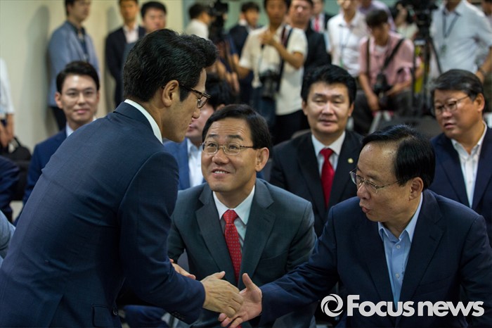 | △ 악수하는 정병국 의원-이주영 의원 |