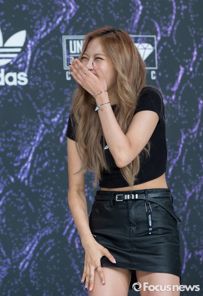 (서울=포커스뉴스) 29일 오전 서울 영등포구 타임스퀘어 아모리스홀에서 열린 Mnet '언프리티 랩스타 3' 제작발표회에 참석한 래퍼 육지담이 포토타임을 갖고 있다.