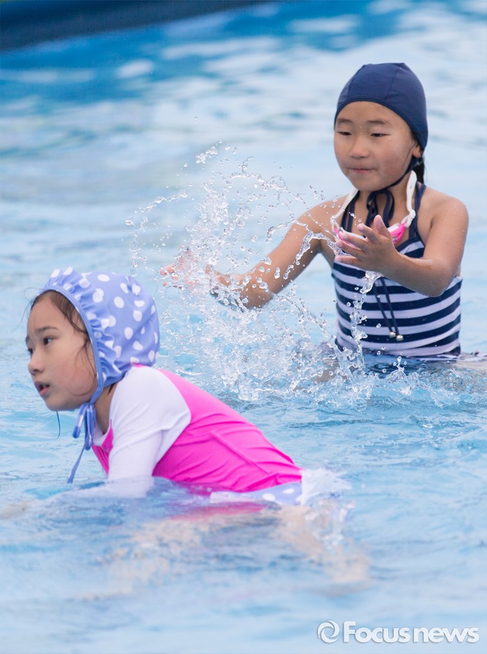 (서울=포커스뉴스) 30일 오전 서울 마포구 망원한강공원 수영장을 찾은 시민들이 물놀이를 즐기고 있다.