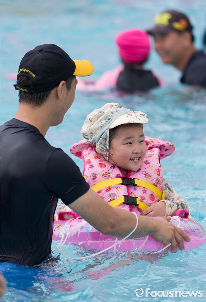 '아빠와 물놀이 해서 행복해요'