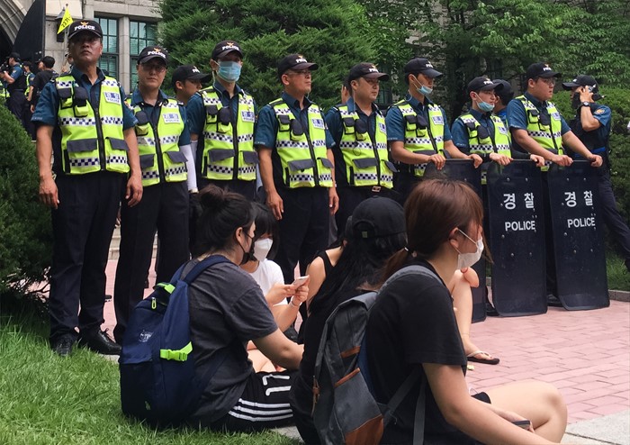 | △ 이대 학생들과 대치하는 경찰 |