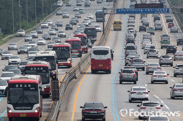 (성남=포커스뉴스) 본격적인 휴가철을 맞은 31일 오후 경기 성남 분당구 궁내동 서울톨게이트에 차량들이 오가고 있다.