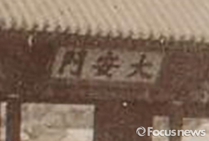 (서울=포커스뉴스)미국인 새디가 담은 구한말 경운궁대안문사진중 편액을 확대한 부분. 1904년 아서 웰번선교사에게 선물로 준 사진이다. <사진제공=프리실라 에비>