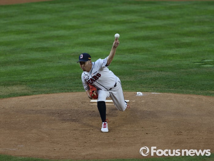 (서울=포커스뉴스) 2일 오후 서울 잠실구장에서 열린 2016 프로야구 LG-두산 경기 1회초 두산 유희관이 역투하고 있다