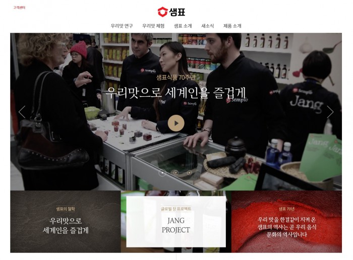 새롭게 개편된 홈페이지에선 지난 70년간 식탁을 지켜온 샘표의 역사와 함께 시대에 따른 우리 식문화 변화를 한눈에 알아볼 수 있도록 역사를 정리했다. 샘표의 다양한 연구 활동과 고객참여 프로그램도 소개하고 있다.