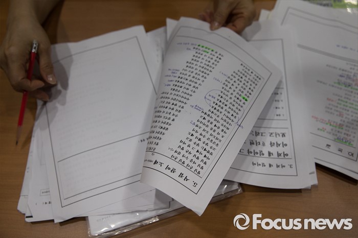 (서울=포커스뉴스) 3일 오전 서울 종로구 경운학교에서 열린 '2016년 초·중·고졸 학력인정 제2회 검정고시'에 한 응시자가 시험준비를 하고 있다.