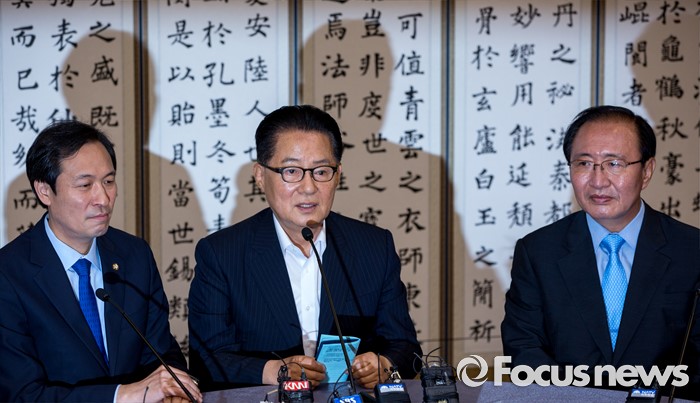 (서울=포커스뉴스) 박지원(가운데) 국민의당 원내대표가 3일 오전 서울 여의도 국회에서 열린 원내대표 회동에 참석해 모두발언 하고 있다.