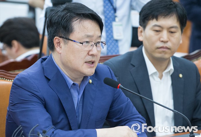(서울=포커스뉴스) 4일 오전 서울 여의도 국회에서 열린 국민의당 원내정책회의에 참석한 송기석(왼쪽) 의원이 발언하고 있다.