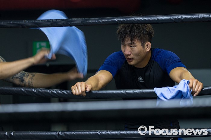 (서울=포커스뉴스) 오는 21일(한국시각) 미국 라스베이거스 T-모바일 아레나에서 개최되는 UFC-202에 출전해 러시아 출신 술탄 알리예프를 상대로 웰터급 경기가 예정된 임현규가 3일 오후 서울 서대문구 TAP복싱 & 레슬링에서 훈련도중 휴식하고 있다.
