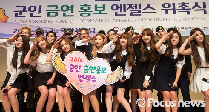 (서울=포커스뉴스) 2일 오전 서울 용산구 국방부에서 열린 '군인 금연 홍보 엔젤스 위촉식'에서 금연 홍보대사로 위촉된 그룹 러블리즈가 포즈를 취하고 있다.