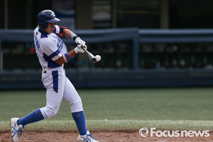 (서울=포커스뉴스) 1일 오후 서울 양천구 목동종합운동장에서 열린 2016 세계 청소년 야구 대회 대한민국과 일본 A조 경기 4회말 1사 상황, 대한민국 송승환이 투수의 공을 치고 있다.