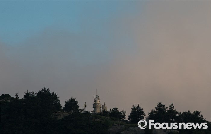 (여서도=포커스뉴스)여서도 전체가 온통 해무에 묻히더니 잠시 푸른 하늘 사이로 여서도 등대가 모습을 드러낸다.