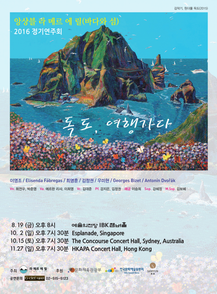 (서울=포커스뉴스) '라 메르 에 릴'(La Mer et L'Île)이 오는 19일 오후 8시 서울 서초구 예술의전당 IBK챔버홀에서 제9회 정기연주회 '독도, 여행가다'를 개최한다.