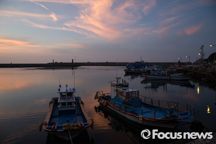 (여서도=포커스뉴스) 전남 완도군 청산면 여서리선착장에 적은 수의 낚시배들이 내일을 기약하며 잠자리에 들고 있다.
