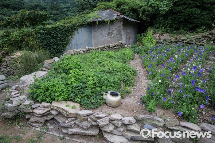 (여서도=포커스뉴스) 여서도 한 폐가의 집터에 잘 정돈된 도라지꽃이 낯선외지인을 반갑게 맞이하고 있다.