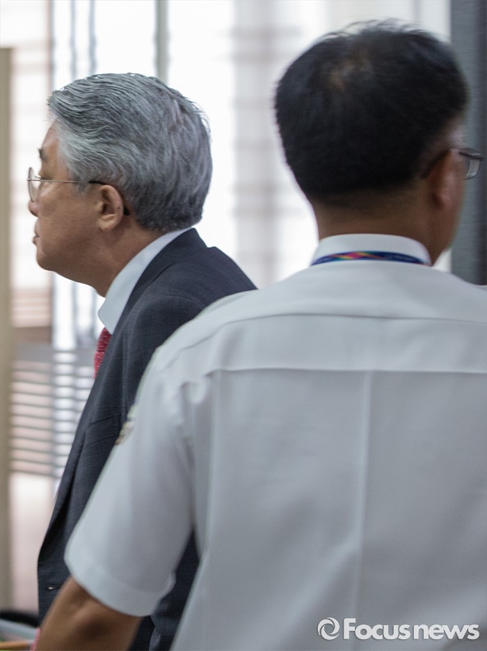 (서울=포커스뉴스) 폭스바겐 배기가스 조작 사건 개입 의혹을 받고 있는 박동훈 전 폭스바겐코리아 사장이 1일 오전 구속 전 피의자 심문을 받기 위해 서울중앙지법으로 출석하고 있다.