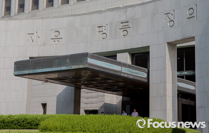 (서울=포커스뉴스) 현직 부장판사가 오피스텔 성매매 혐의로 현장에서 적발돼 파문이 이는 가운데 4일 오전 서울 서초구 대법원 정문에 '자유 평등 정의'라는 문구가 적혀 있다.