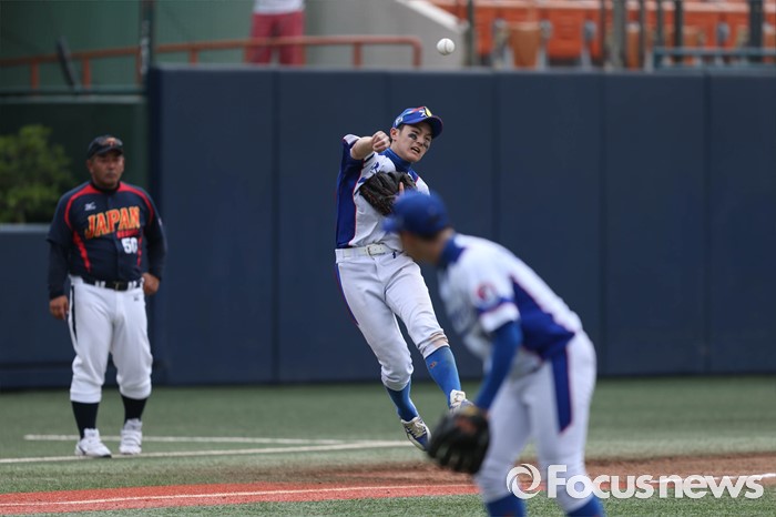 (서울=포커스뉴스) 1일 오후 서울 양천구 목동종합운동장에서 열린 2016 세계 청소년 야구 대회 대한민국과 일본 A조 경기 3회초 2사 1루 상황, 대한민국 김주영이 1루로 송구하고 있다.