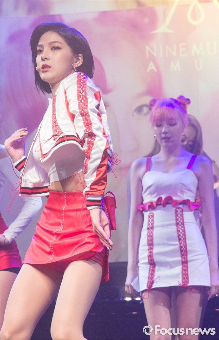 (서울=포커스뉴스) 4일 오전 서울 도봉구 플랫폼창동61에서 열린 걸그룹 나인뮤지스A의 싱글앨범 'MUSES DIARY' 발표 쇼케이스에 참석한 멤버 소진이 무대를 선보이고 있다.