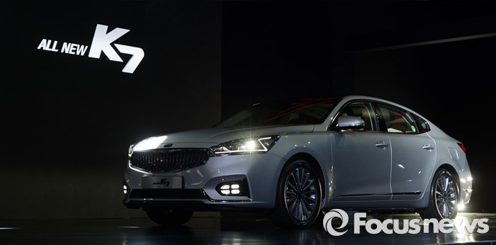 (서울=포커스뉴스) 26일 오전 서울 강남구 그랜드 인터컨티넨탈 서울 파르타스에서 열린 '기아차 올 뉴 K7 신차발표회'에서 K7 차량이 무대 위에 전시되어 있다. 2016.01.26 오장환 기자