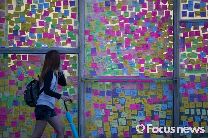 (서울=포커스뉴스) 미래라이프 대학 설립에 반대하는 학생들이 엿새째 이화여대 본관을 점거하고 있는 2일 밤, 서울 서대문구 이화여대 교내에 다양한 목소리의 시위성 글들이 붙어 있다.