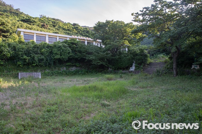 (여서도=포커스뉴스) 학생이 없어 폐교된 전남 완도군 청산면 여서초등학교 운동장이 풀밭으로 변하고 있다.