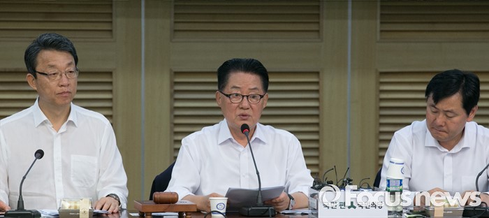 (서울=포커스뉴스) 2일 오전 서울 여의도 국회 의원회관에서 열린 국민의당 의원총회에 참석한 박지원(가운데) 비상대책위원장이 모두발언을 하고 있다.
