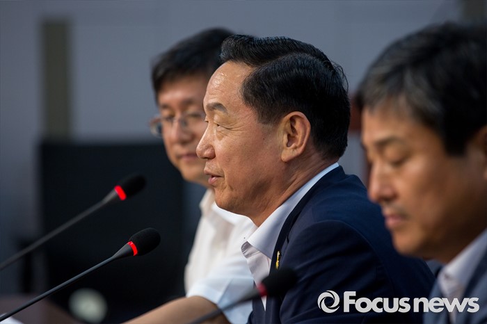 (서울=포커스뉴스) 더불어민주당 전당대회 당대표 출마에 나선 김상곤 후보가 1일 오후 서울 여의도 국회의원회관에서 열린 '전국자치분권민주지도자회의 당대표 후보자 초청 토론회'에 참석해 인사말 하고 있다.