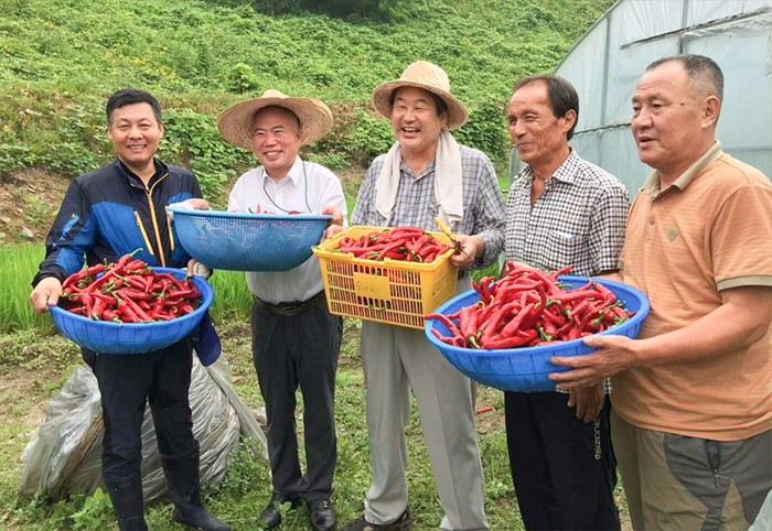 (서울=포커스뉴스) 전국 민생투어를 이어가고 있는 김무성 새누리당 전 대표가 2일 전남 보성군 벌교읍 한 마을을 방문해 주민들과 함께 수확한 고추를 들어보이고 있다. <사진제공=김무성 전 대표 페이스북>