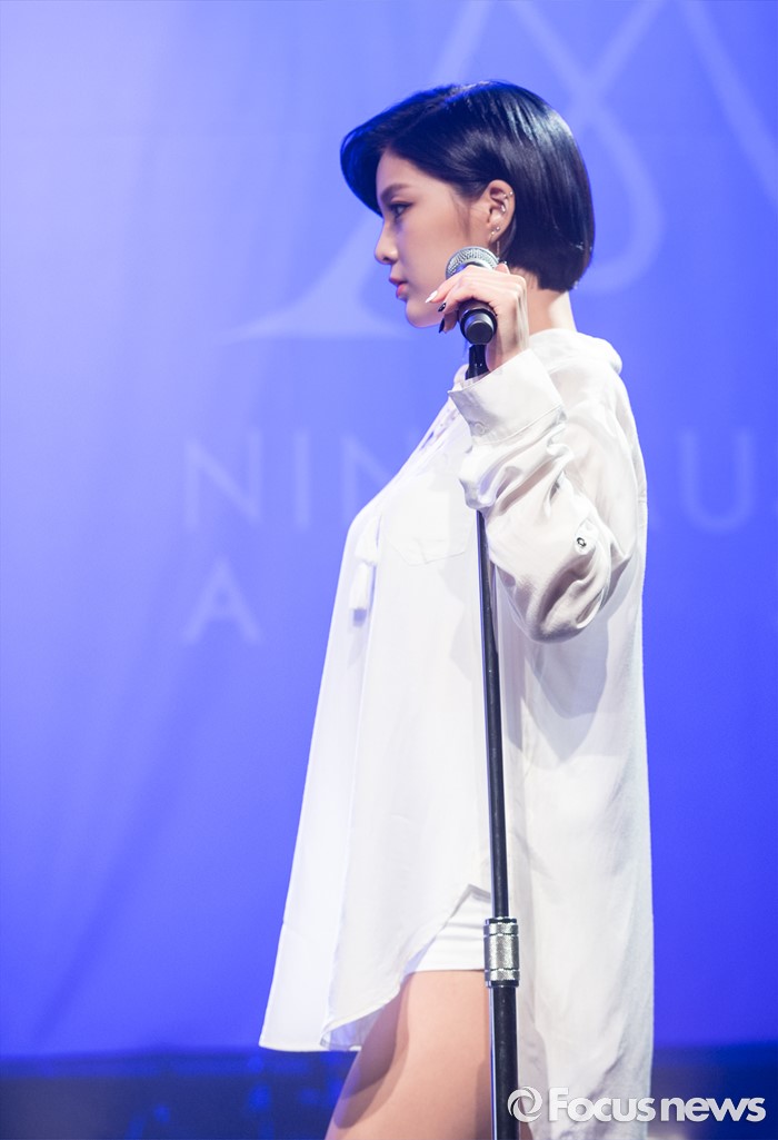 (서울=포커스뉴스) 4일 오전 서울 도봉구 플랫폼창동61에서 열린 걸그룹 나인뮤지스A의 싱글앨범 'MUSES DIARY' 발표 쇼케이스에 참석한 멤버 소진이 무대를 선보이고 있다.