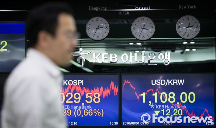 (서울=포커스뉴스) 증권·파생상품 시장, 금 시장의 정규장 매매거래 시간이 30분씩 연장된 1일 오후 서울 중구 KEB외환은행 본점 딜링룸에서 딜러들이 업무를 보고 있다. 이날 코스피는 13.42(0.67%) 오른 2,029.61에 마감했으며, 원·달러 환율은 전날보다 12.2원 내린 1108.0원에 거래를 마쳤다.