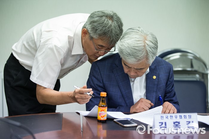 (서울=포커스뉴스) 한국농축산연합회 대표자들이 1일 오전 서울 서초구 제 2축산회관에서 김영란법 대응에 관련된 회의를 하고 있다.